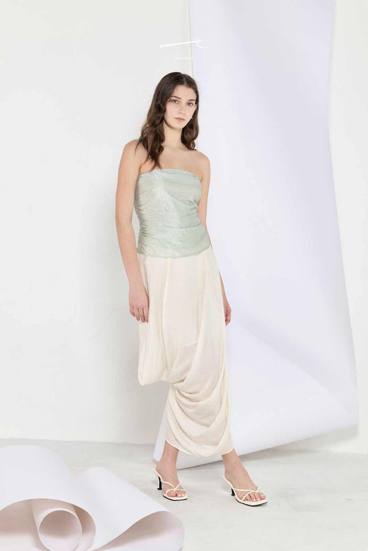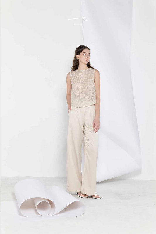 Beige Slouchy One-Shoulder Knoted Linen Top