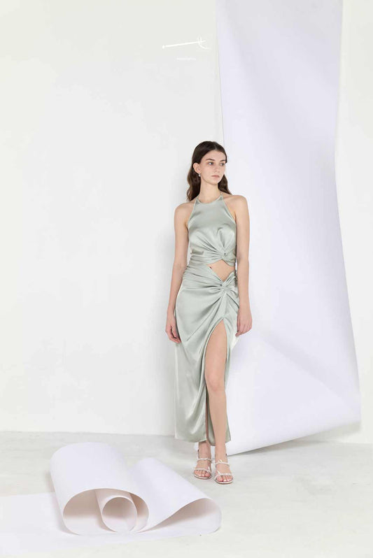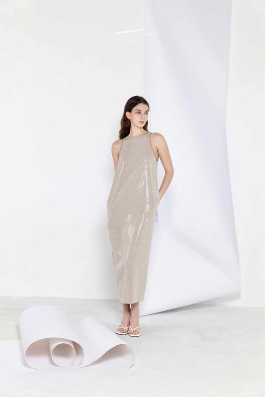 Beige Cocoon-Shape Sequin Slit Maxi Dress