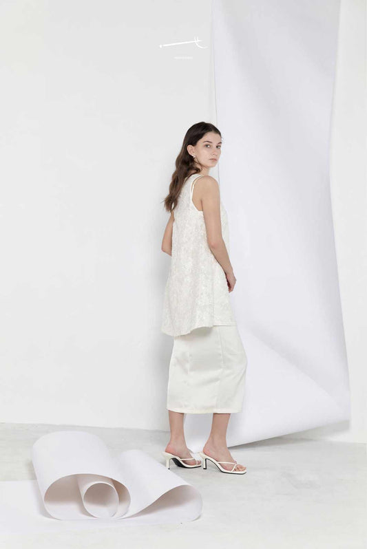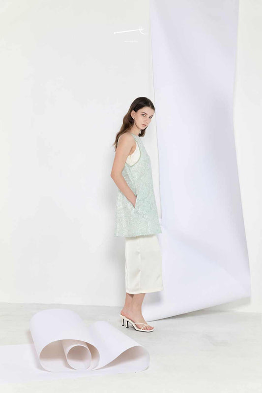 ——When night falls, the backless dress she hides in her trench coat begins to leap out of the sky, her shadowed body moving freely through the timeless romance of time.