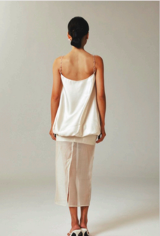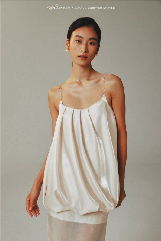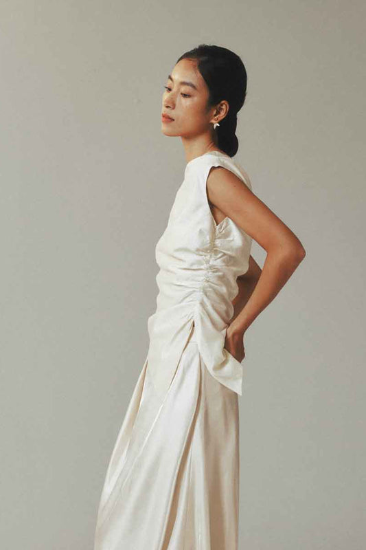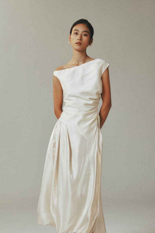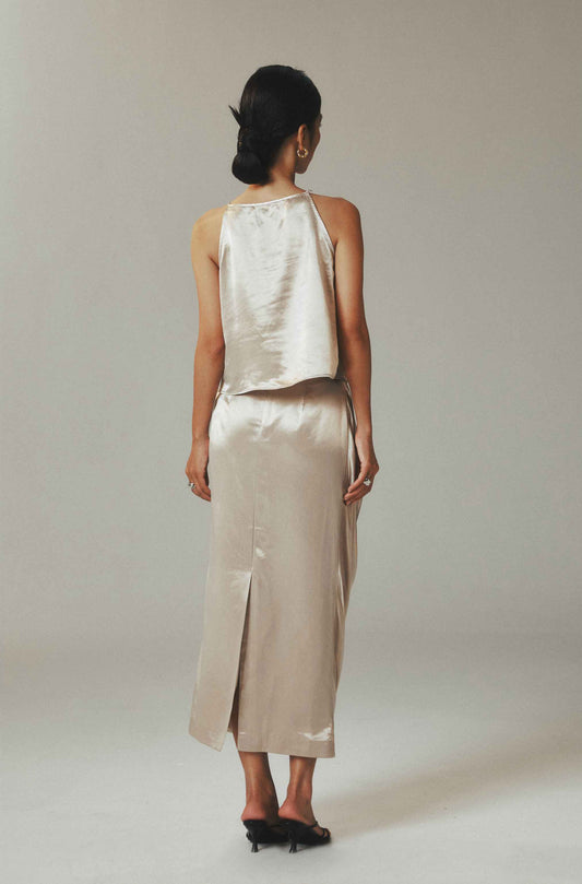 Champagne Ice Silk Maxi Skirt with Cowl Draping
