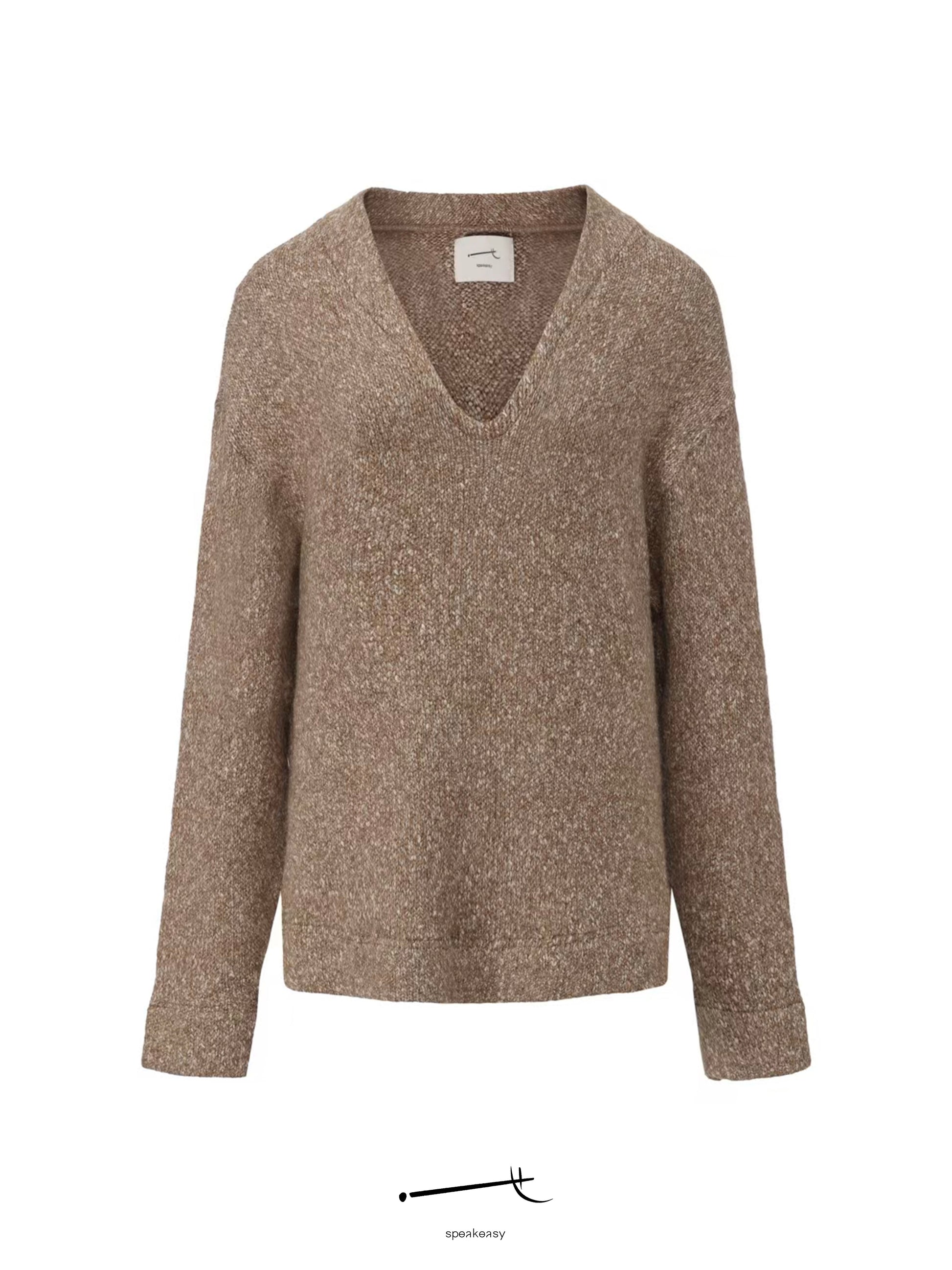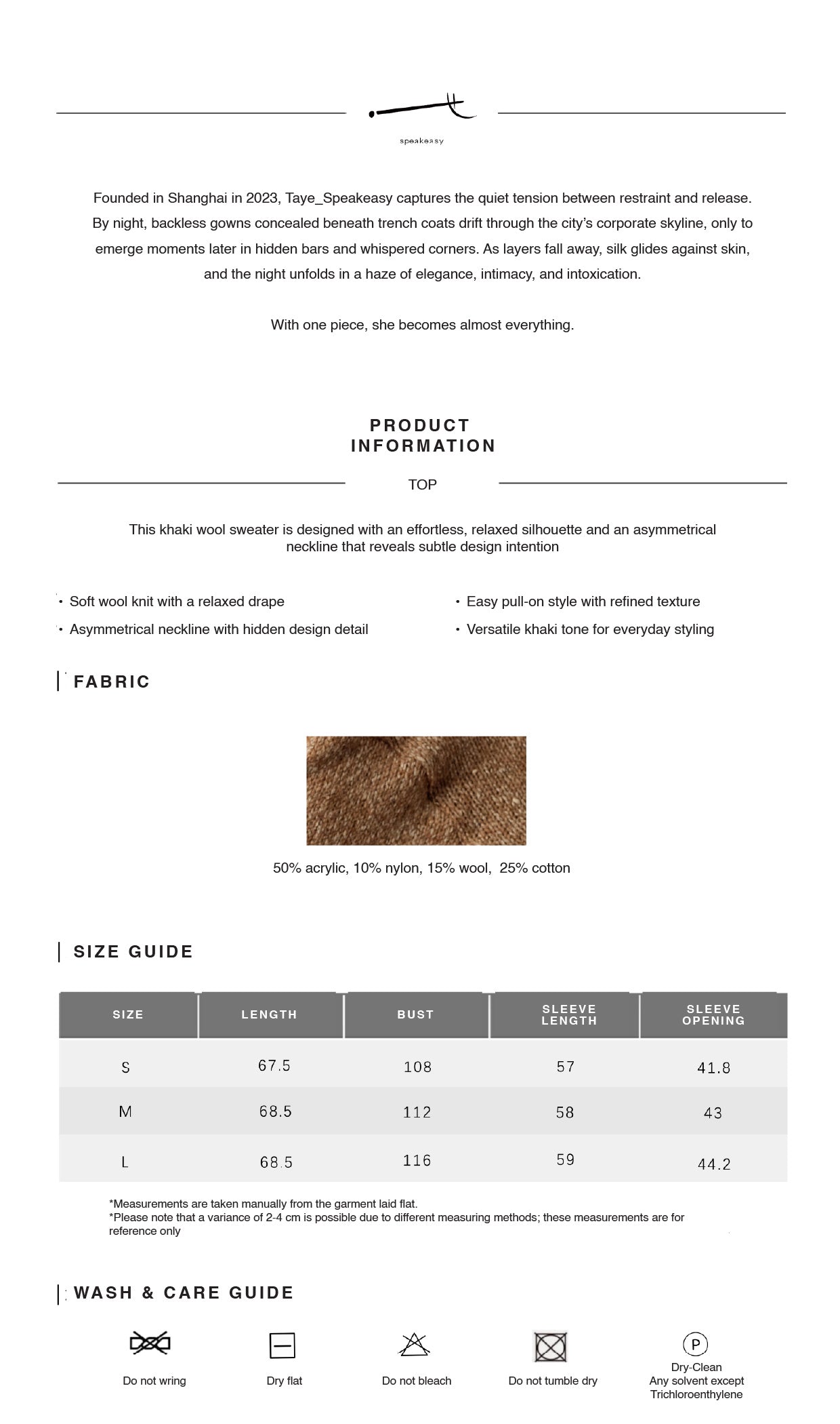 This set balances softness and structure through thoughtful contrast. The relaxed wool sweater features an asymmetrical neckline that reveals subtle design intention, while the tailored acetate trousers sculpt the body with clean lines and a gentle sheen. Together, they create an effortless uniform for modern day-to-evening dressing.